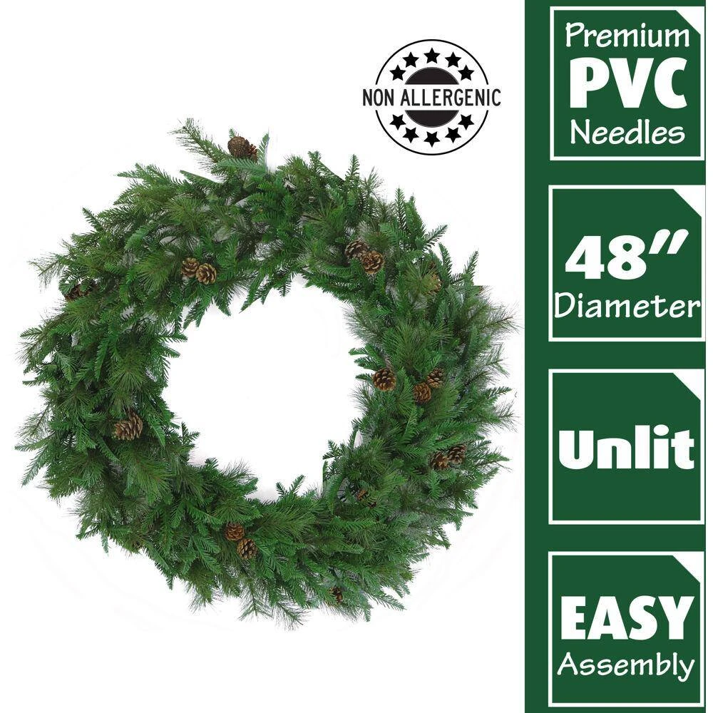 - DECK YOUR HALLS: Welcome guests with this delightful 48-in pine wreath above your fireplace, on your wall, or in any other place you want to add some Christmas joy.