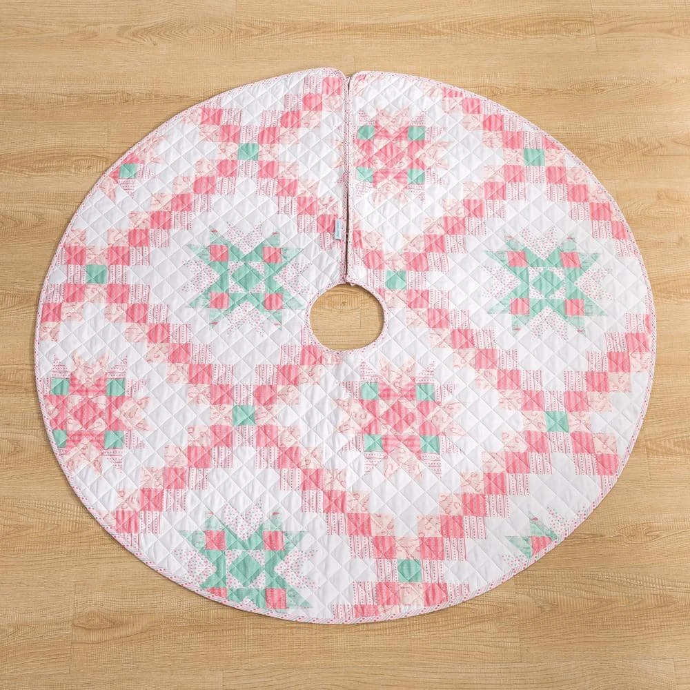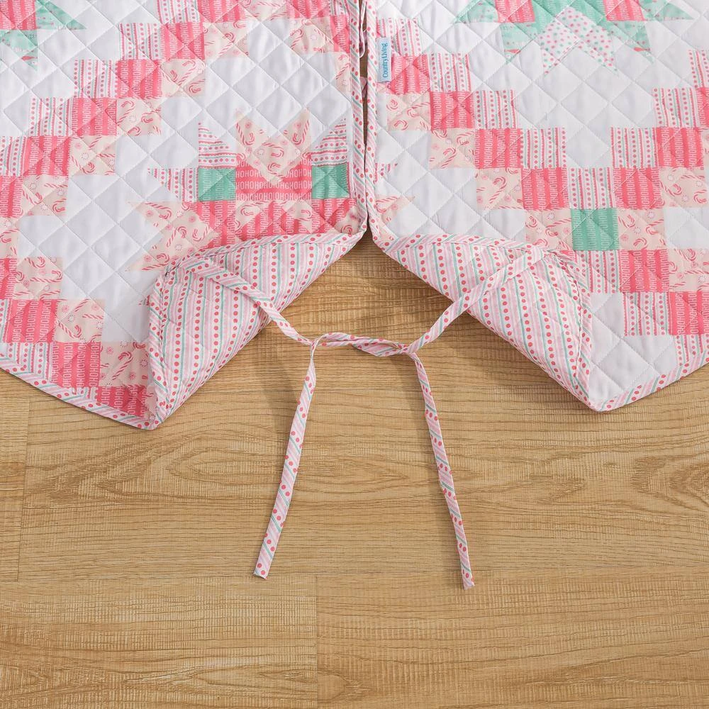 Take a step back in time with the COUNTRY LIVING Retro Star Tree Skirt. The color palette and design are inspired by vintage holiday ornaments. Both sides feature a soft brushed microfiber fabric with diamond quilt stitching and are finished with a matching binding for a clean look. The fully reversible tree skirt features a coordinating allover print to provide versatility in your styling. Can coordinate back to the Retro Star Quilt Set and Stocking (sold separately).