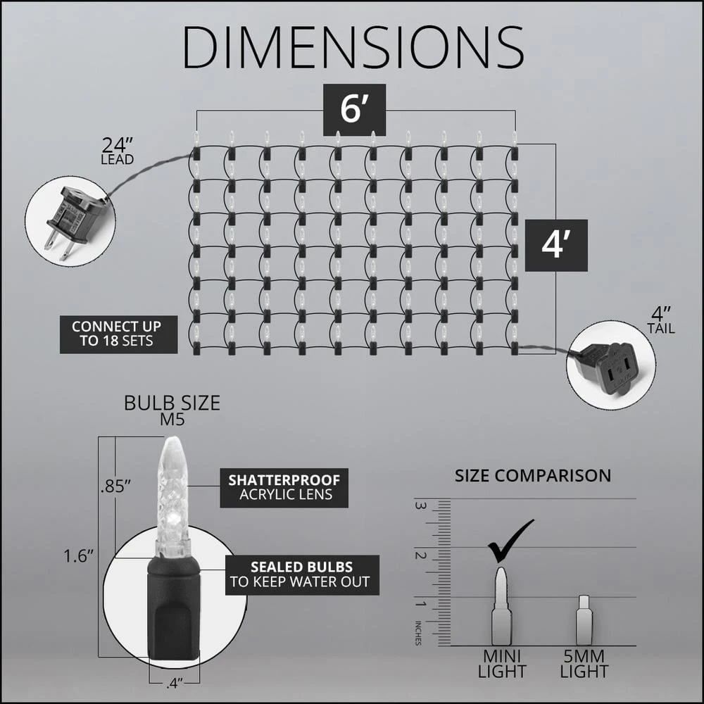 - Set of 100 warm white non-twinkle LED mini lights on a 4 ft. x 6 ft. green wire net, perfect for decorating bushes and shrubs