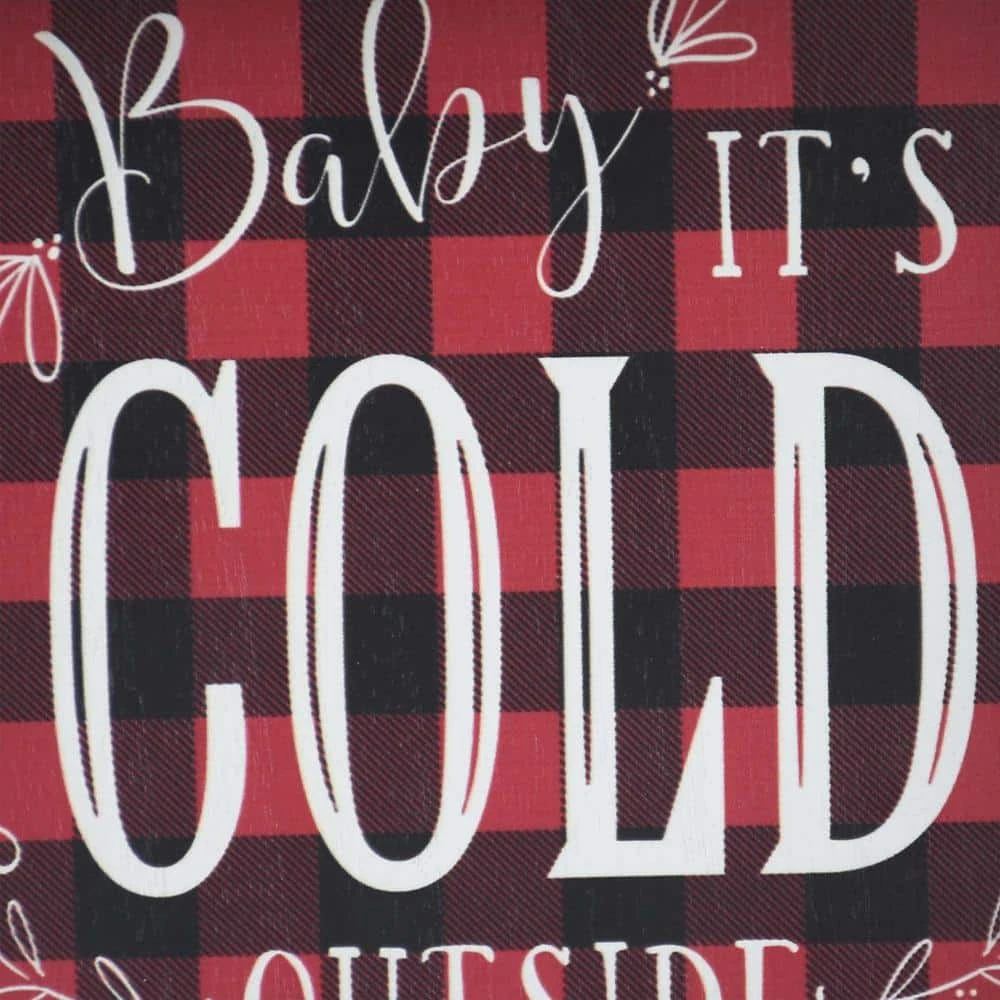 Get ready for winter and bring holiday cheer into your home with this small Baby It’s Cold Outside Framed Wood Tabletop or Wall Decor. This farmhouse wooden sign features a red and black buffalo check print, playful white wording and a rustic wood frame, adding a fun and festive accent to any spot in your home. It is made from wood and sits easily on a shelf, mantel, table or counter. The overall size measures 5.875 in. x 5.875 in. This cheerful and affordable holiday sign is a great gift for friends or family members that love to decorate their home for the holidays. Add it to a gift basket or attach it to the top of a holiday gift to make it extra special.