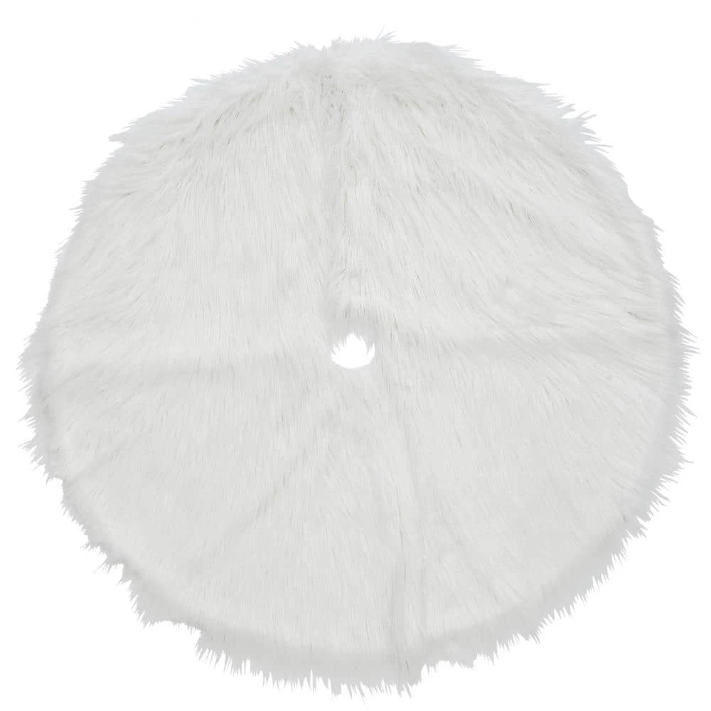 Add the finishing touch by surrounding the base of your Christmas centerpiece with this bright white tree skirt. Made of 100% polyester, this skirt features a soft and furry feel provided by the high pile fabric design. The split seam opening allows for easy placement with Velcro tabs included to close and secure the seam.