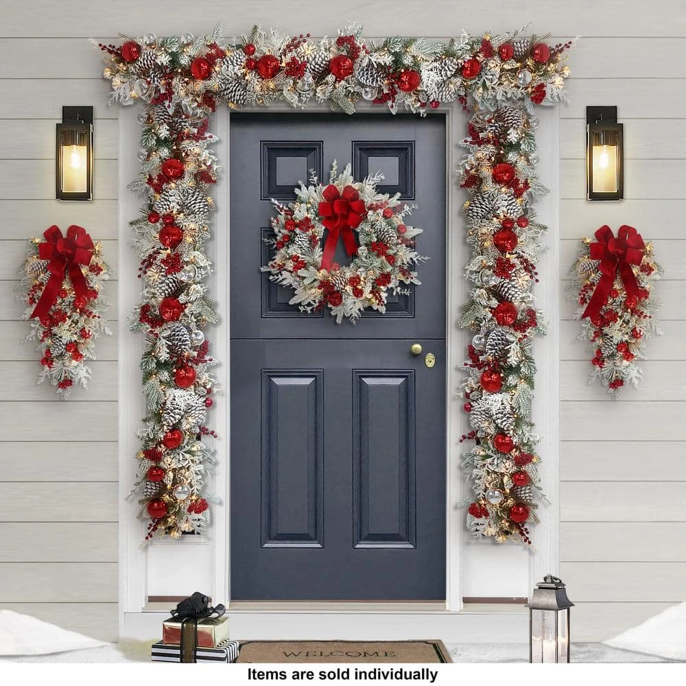 - Features: decorated garland is adorned with 14-berries, 10-pinecones, 6-silver balls, 8-red balls, and 7-shiny silver balls