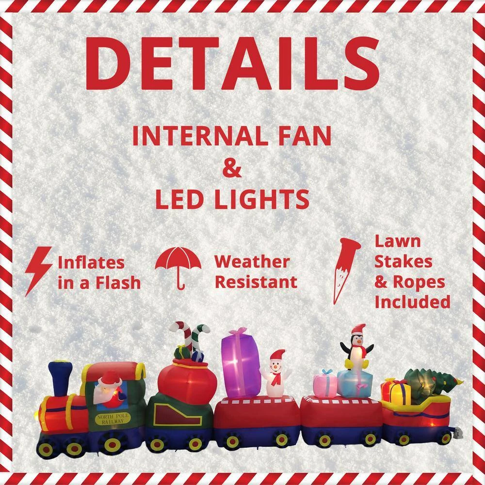 - Pre-lit: brighten your lawn, garden, yard, open porch, or deck with this blow-up Christmas train that lights up