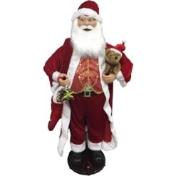 - Fesrive outfit: santa is dressed in his most festive xmas outfit with a stuffed stocking and a teddy bear, he’s sure to complete your holiday decor