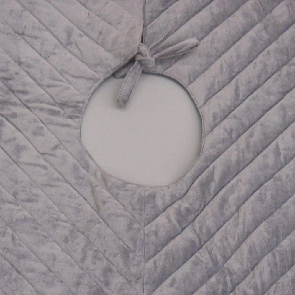 Add a vibrant finishing touch to your Christmas centerpiece with this stylish silver velvet tree skirt. Made with a mixture of cotton and polyester materials. This skirt features a decorative straight-line quilted stitching and wide border.