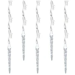 This 60 count set of LED Icicle lights have a pure white ice at the end of each strand. Strung on white wire, these lights have a 24 in. lead cord, 3 in. spacing between bulbs and a 4 in. end cord. Each icicle is 5 in. long with an icicle at the end of each. Also comes with stay straight clips to keep lights in place.