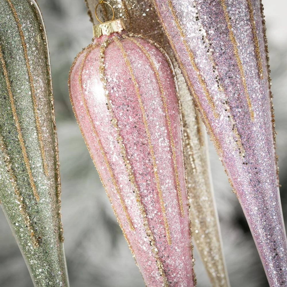Add a touch of class to your holiday decor this Christmas season with these delicate shimmering icicle ornaments. Embellished with gold glitter over pastel colors, these ornaments are sure to make your holiday decor stand and have you in the holiday spirit. Great for gift giving and creating long lasting memories. Over the last 55-years, Sullivans has become an industry leader in home decorations. Our brand is rooted in tradition while incorporating modernized trends to keep your home looking up to date with timeless style. Here at Sullivans, we pride ourselves on creating product designs focused on quality and value, ensuring that our customers have access to beautiful products at reasonable price points.