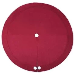 The Santa Bag Tree Skirt, a clever way to keep your gifts a surprise until Christmas morning! It also protects the presents from inquisitive pets. The deep burgundy skirt measures 80 inches in diameter when laid flat. There is a drawcord built into the collar along the outer edge of the skirt. Place your gifts on the skirt and use the drawcord to enclose them. The skirt will fold over the presents to create the look of a closed Santa bag. The top and collar are double-sided for a finished look, and the cord has white pom poms on the ends for an added touch.