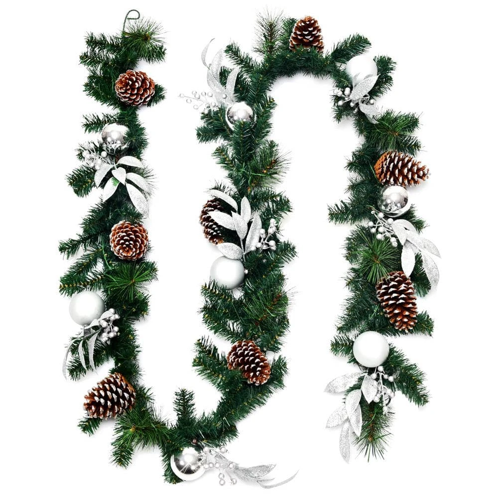 The 9 ft. Pre-lit Christmas garland serves to accompany with you through the Christmas. The natural-looking needles and branches are made of high quality PVC material that durable for long time use. Containing 50 LED lights, the Christmas rattan will provide a colorful and shiny space for you, which also brings the warmth to the winter. When the night falls, you can turn on the light, and then it will be the most eye-catching decoration. With the timer, it’s convenient to control the light too. The Christmas rattan comes with several ornaments such as pine cones, sliver balls and leaves. With no need for extra decorations, it offers different Christmas elements and makes the festival more cheerful. So whether it’s hung on the wall indoors or outdoors, surely it will deliver the vitality and warmth to you.