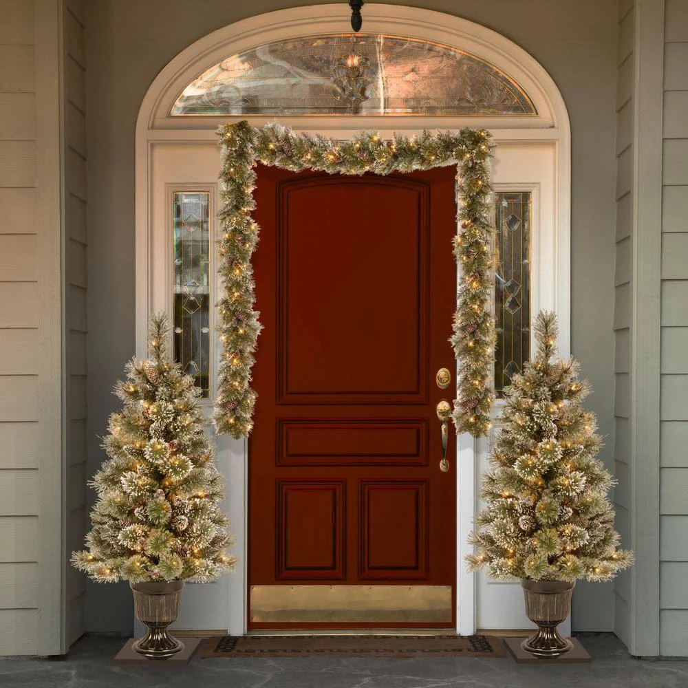 The Glittery Bristle Pine is a mixed branch garland trimmed with white-tipped pinecones and featuring glittered tips for added holiday sparkle. It is pre-strung with 100 Twinkly brand smart LED lights that offer a wide array of color and function choices. Lights are operated through a direct or home Wi-Fi connection. A downloadable App from Twinkly provides a broad selection of advanced and unique effects as well as light feature updates. This garland can be displayed over doors, windows, fireplace mantels, fence or stairway railings in indoor or covered outdoor locations.