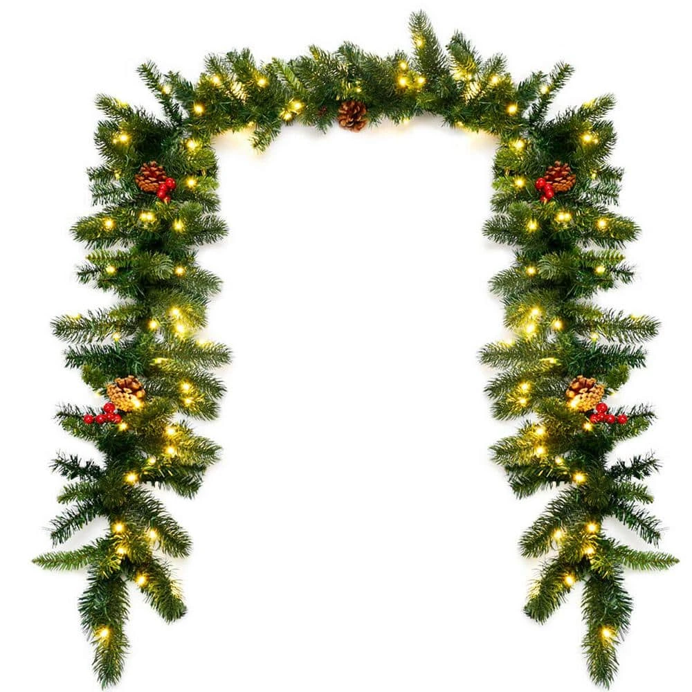 Warm hearted wishes for an old fashioned Christmas and a happy new year filled with all your favorite things. This is our 9 ft. pre-lit garland for Christmas decoration, which can add great fun to your holiday. This beautiful decorative rattan is made from 100% new PVC and PE material, has fascinating winter details, including pine cones and red berries. It comes with 100 warm white LED lights and a battery powered timer. After the power supply is switched on, the soft light will brighten the Christmas night. This rattan can be perfectly placed on the table, fireplace and anywhere you want to create a Christmas atmosphere. It can build an incredible festival party and bring a happy winter bless.