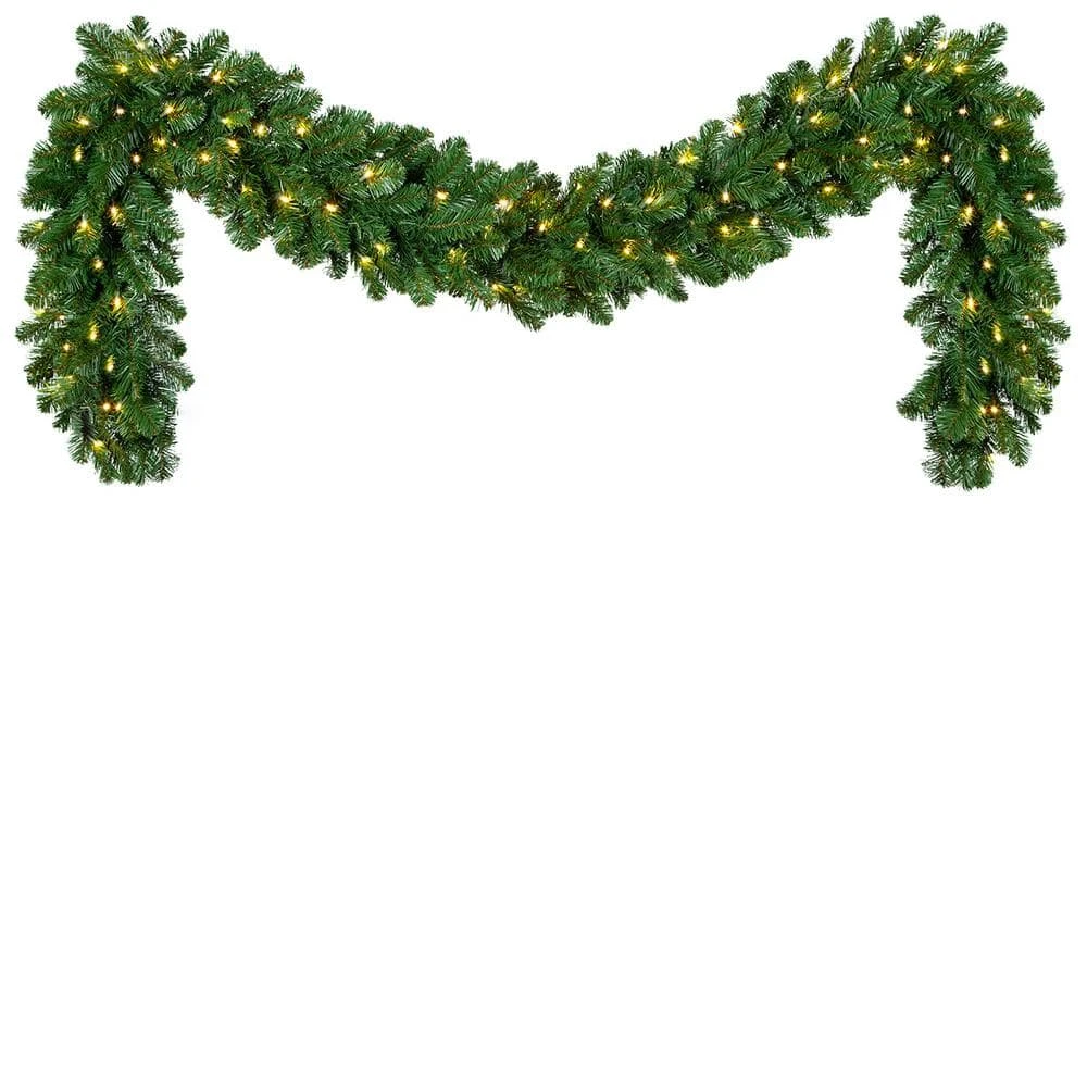 - Lush, artificial commercial garland with warm white 5 mm LED mini lights, 9 ft. total length