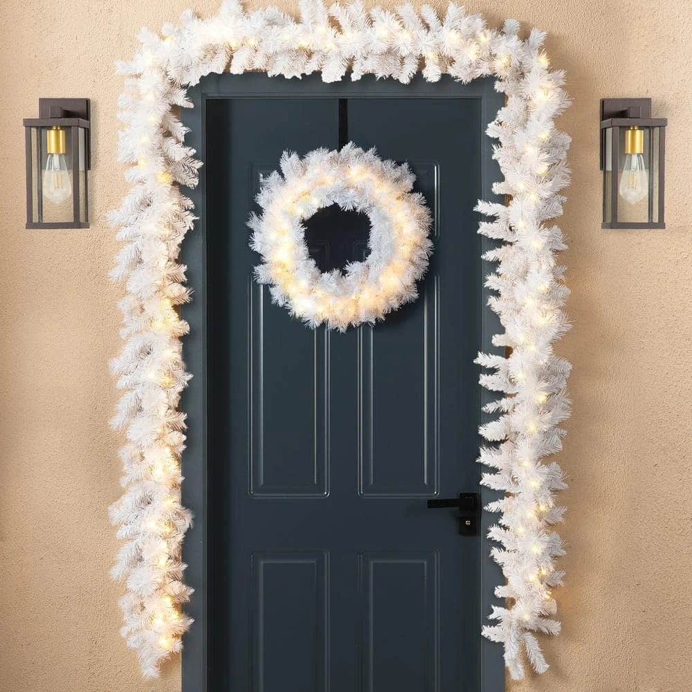 The 9 ft. White mixed tips pine garland provides ample length to easily adorn doors, mantles or banisters, making this versatile decoration ideal for any situation. Each of the 175 tips is modeled to a pine tree’s while the frosted design creates a winter wonderland around your home. Pure white pine with warm white LED light add an extra holiday touch to this garland. It’s creating the perfect holiday touch for your home. Product may ship compressed -You can adjust all the branches with an elegant look like the images.