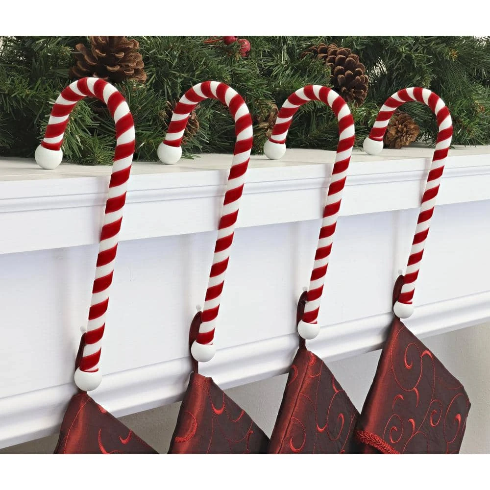 The Candy Cane stocking holder (4-Pack) set is a unique and simple way to hang stockings. It’s light-weight yet can hold a full stocking without falling off the mantel, making it a more kid friendly product compared to heavy, counter-balance stocking holders. These holders fit most mantel shapes and sizes and can also be used on counter tops, tables and a variety of other surfaces around your home.