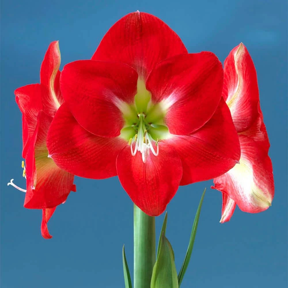 Hippeastrum (commonly known as Amaryllis) are popular for their indoor holiday color and are often given as gifts from October through January. They are easy to grow and are impressive flowers. Their large blossoms can measure up to 8 in. across. We only ship 1 large blooming bulb size to ensure well-proportioned plants, which are guaranteed to produce large, vibrant blooms for you. As bulbs are essentially storage mechanisms, they already contain everything needed to produce flowers. They are tropical and subtropical. All you will need to do is plant them and water. But best of all, they can be induced to re-bloom indoors for years to come. This Specialty Amaryllis kit comes with everything you need to grow this exotic plant: 1 Monaco Amaryllis bulb, a 5 in. x 6.5 in. metal sink like, white shell chalk outer planter, a 5 in. nursery pot, planting medium and a set of growing instructions.