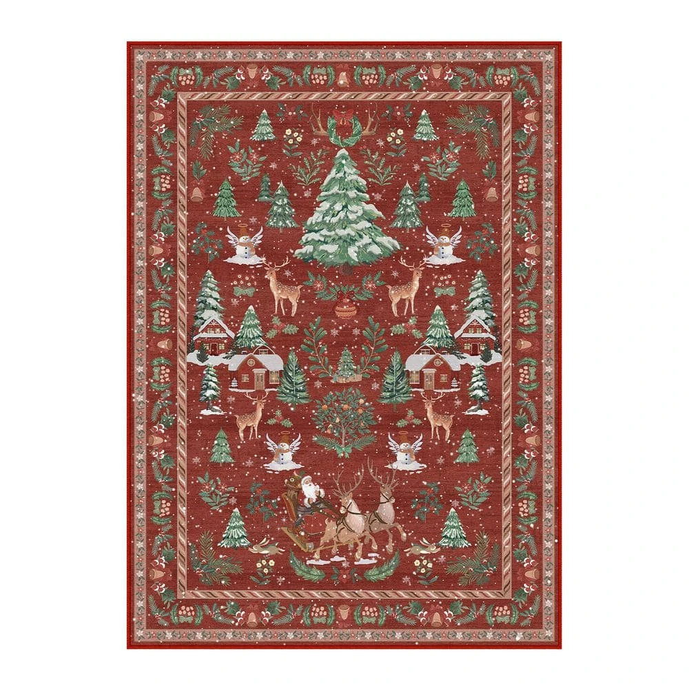 HaiiMeid area rug brings festive cheer to your home with its vibrant Christmas design featuring Santa Claus, reindeer, snowmen, Christmas trees and snowflakes in classic red hues. The innovative 50G dotted sponge backing provides superior cushioning comfort underfoot while offering exceptional slip resistance – with better crease recovery than traditional TPR bases. Crafted with stain-resistant, easy-to-clean materials that stand up to pet traffic, this holiday rug combines joyful seasonal style with practical durability for your entryway or living space.