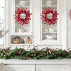 14 In. D Mini Red Berries Unlit Artificial Christmas Wreath (Set Of 2)