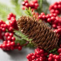 18.5 In. Natural Brown And Red Glitter Unlit Artificial Christmas Wreath With Pine Cones