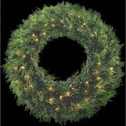 24 In. Dia. Wreath Cedar 70 LED Warm White Lights Battery Operation