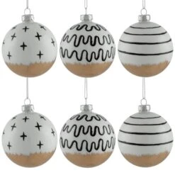 Northlight Abstract Glass Ball Christmas Ornaments-3 In. (80mm)-White And Black-6ct