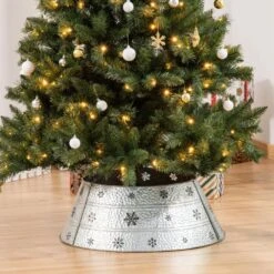 Farmhouse Deluxe 27 In. W X 14.5 In. H, 37 In. Dia, White Wash Decorative Christmas Tree Box Collar