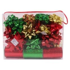 2.5 In. X 9 Ft. 4 Assorted Red Wire Edge Christmas Ribbon (24-Pack)