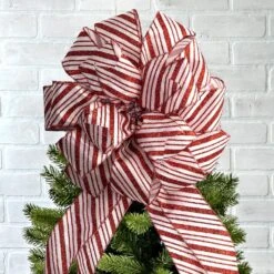 Christmas Tree Topper Bow And 12 Mini Bows Red And White Glitter Candy Cane Stripe Ribbon