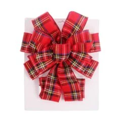 Christmas Tree Topper Bow And 12 Mini Bows Red And Black Buffalo Check Plaid Ribbon