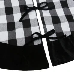 48 In. Black And White Buffalo Plaid Christmas Tree Skirt With Black Velvet Cuff