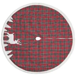 48 In. Red Festive Burlap Farmhouse Christmas Decor Tree Skirt