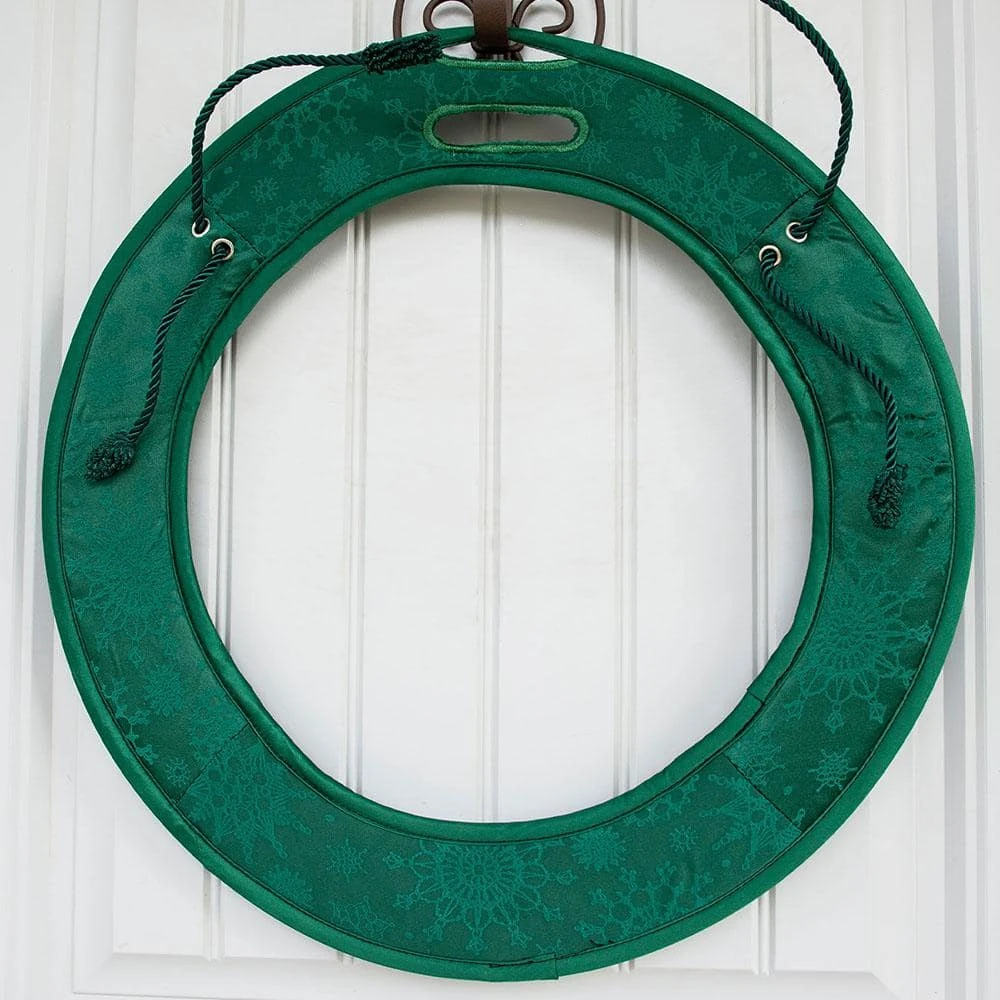 Hanging a wreath on your front door gives your home a welcoming entrance that leaves your visitors stunned. After time though, the wreath causes damage to your door through rubbing against it. The Door Saver is designed to protect your door from dings, dents, and scratches caused by wreaths. The easy-to-attach protective pad secures directly to the wreath’s frame using twist ties. Padded for extra protection, the pad has 2 slots to allow access for your wreath hanger to hook onto the wreath’s frame. The wreath pad fits most 30 in. – 33 in. wreaths. The festive green fabric is embossed with a snowflake pattern to complement the beauty of your wreath while staying discreet.