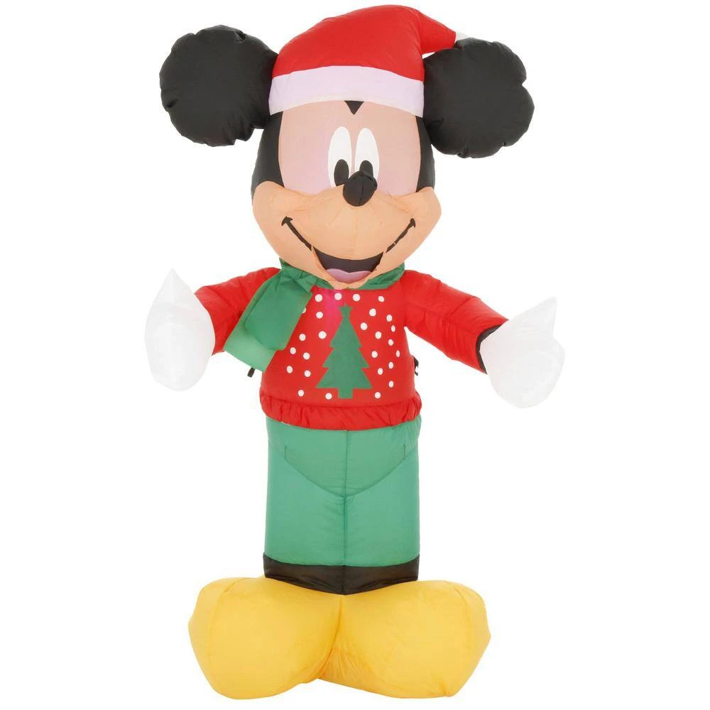 Create a holiday wonderland with an Airblown Inflatable featuring Mickey Mouse wearing a Santa hat and red Christmas sweater. His adorable face will bring a smile to guests and passerby. This outdoor holiday yard decor is easy to set up; just plug it in and stake it down. Perfect as a standalone decoration or combine it with other Airblown Inflatables to create a customized scene. Includes everything you need for setup.