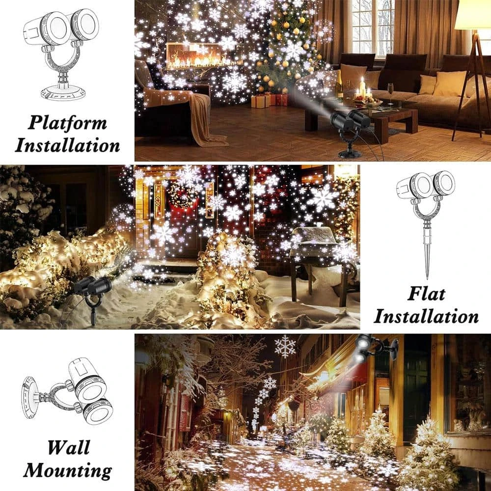 Transform your space into a winter wonderland with this Dual-Head Christmas Snowflake Projector Light, featuring lifelike snowflake patterns that rotate to create a festive ambiance. Built with IP65 waterproof durability, it withstands harsh weather, making it perfect for outdoor and indoor use year-round for holidays, birthdays, or weddings. With easy installation and 180° adjustable orientation, you can project charming snowflakes on walls, lawns, and patios with ease. This projector light is the perfect gift for holiday enthusiasts, adding seasonal joy and elegance to any celebration.