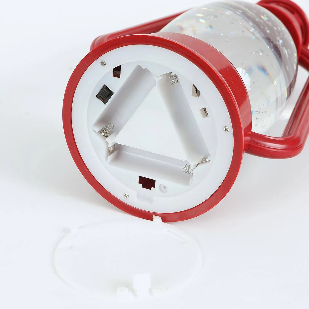 Enhance the beauty of your home this holiday with this lovely decorative holiday lantern. The holiday lantern can be hung or used as a centerpiece. The red lantern features a snowman and penguin along with a LED adding to the festivities of the season. The lantern is also filled with liquid and glitter that highlights the LED light when on.