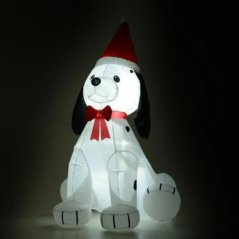 Create the ultimate festive Christmas display in your outside yard this holiday season with HomCom’ 6 ft. tall inflatable which features a sitting dog wearing a Santa Claus hat. Designed with ultra-durable, weather-resistant polyester and featuring an internal white LED glow, this holiday decor will create a festive focal point in your front or back yard. Self-inflating in minutes, this display plugs into any standard outlet allowing for a super simple set-up process that anyone can do. Build the perfect seasonal yard display and bring holiday cheer in classic Christmas fashion this year and in years to come with HomCom.