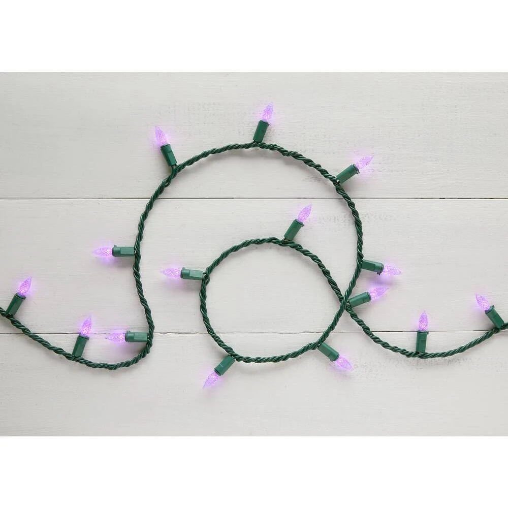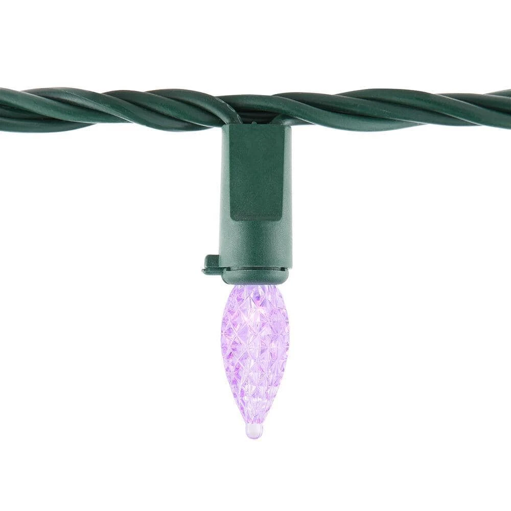 Achieve a constant glow around your home for the holidays. This 16.33 ft. constant-on light string will still light up your area if a bulb goes out. These 50-light purple LED faceted C3 super bright Christmas string lights make a convenient piece for your holiday decor. The light bulbs are encased in a crystal-like bulb, which stays cool to the touch when lit. This light string is suitable for indoor and outdoor use.