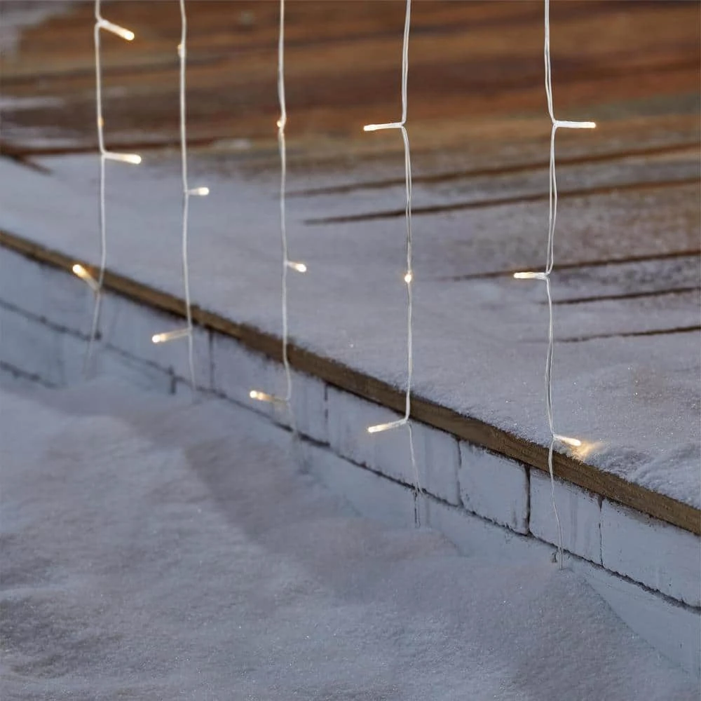 Turn your home into a winter wonderland with these Home Accents Holiday 600 Warm White Steady Lit Twinkling Weeping Willow Micro LED Icicle Lights. These warm white micro LED lights are cool to touch when lit. There is 12 ft. 6 in. of lighted length to use along gutters, in trees, along fence or anywhere you want to create an outdoor light show. These lights can also be used indoors along railings or wall trimmings. These twinkling mini icicle lights are long lasting up to 25,000 hours (up to 15 holiday seasons). These micro icicles are displayed on a clear wire for the optimal twinkle effect. These LED lights come with a 3 year warranty, so you’ll have a merry holiday season year after year.