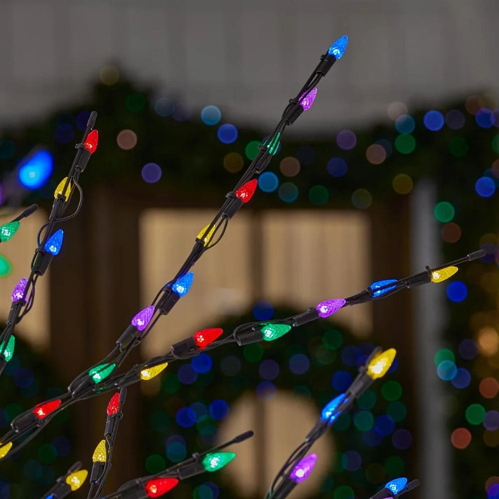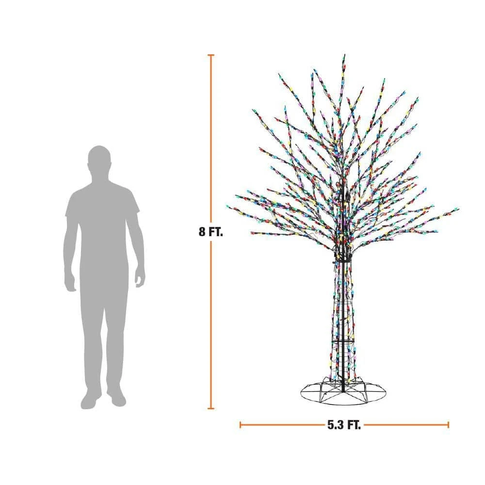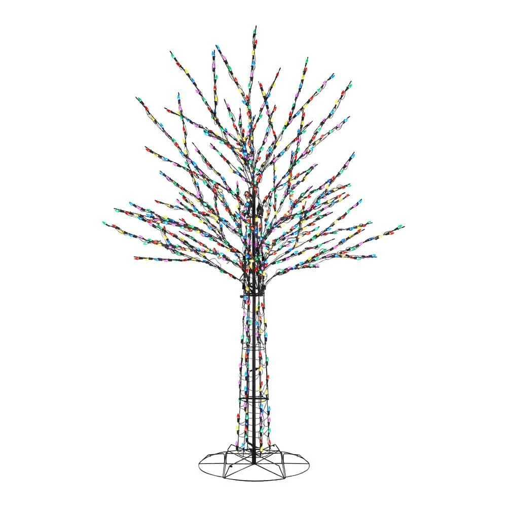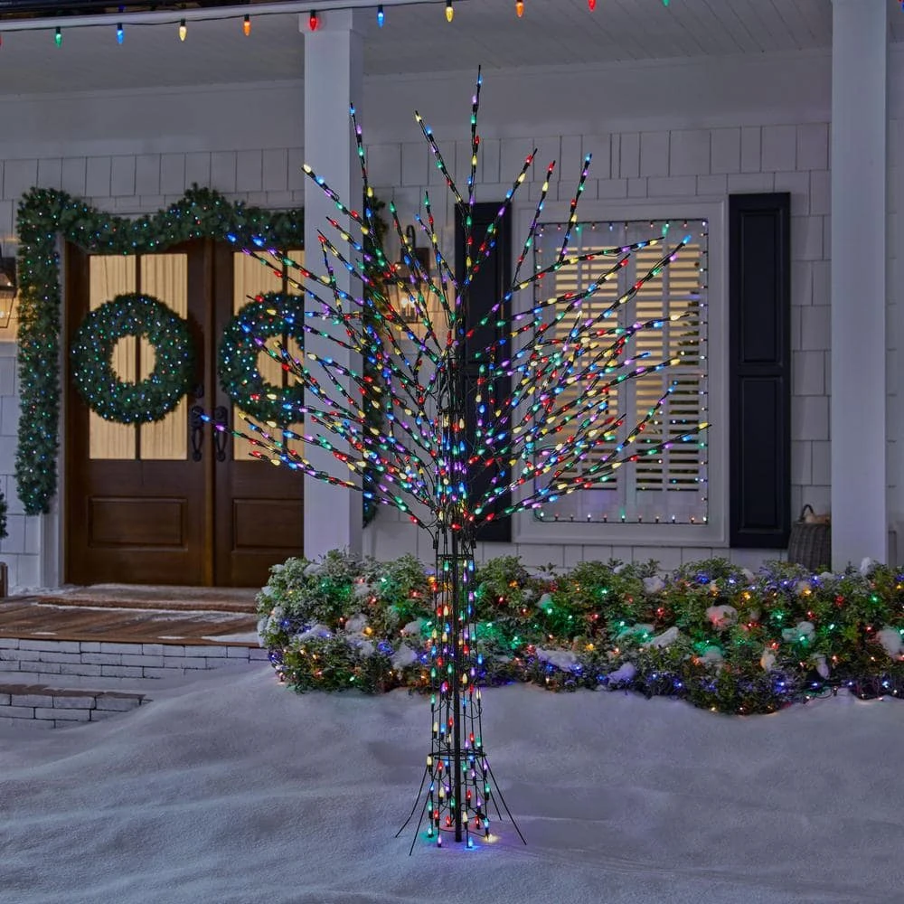 Create a festive Christmas display with this 8 ft. Giant-Sized LED Pre-Lit Bare Tree from Home Accents Holiday. This tree is suitable for indoor or outdoor use. It has 700 multi-colored LED lights and a durable pre-wired metal frame. It plugs into a standard outlet for flexible placement. Ground stakes are included. It’s the perfect yard decoration for your home, front porch, or yar. This is suitable for indoor or outdoor use.