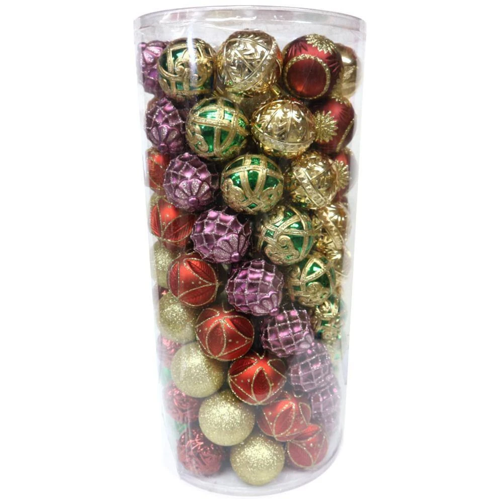 Our 60 mm. Warm Tidings 101-Count Shatter-resistant Christmas Ornament Assortment is a beautiful assortment of embellished shatterproof ornaments. The hand-painted ornaments are very durable and include a variety of shapes and designs with glitter, shiny and matte finishes perfect for decorating your tree, wreath, garland or centerpiece. Make a nice decoration for all Christmas trees, let’s to liven up your seasonal decor with a lot of seasonal sparkle.