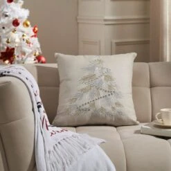 20 In. HGTV Home Collection Embroidered “Happy Holidays” Pillow