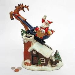 9.5 In. X 9.5 In. Santa’s Christmas Sleigh Ride Die-Cast Iron Mechanical Coin Bank