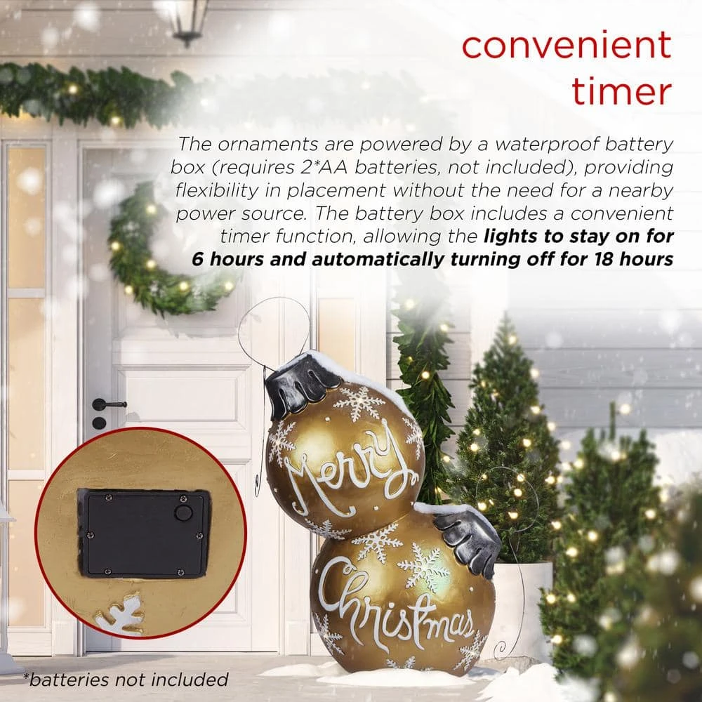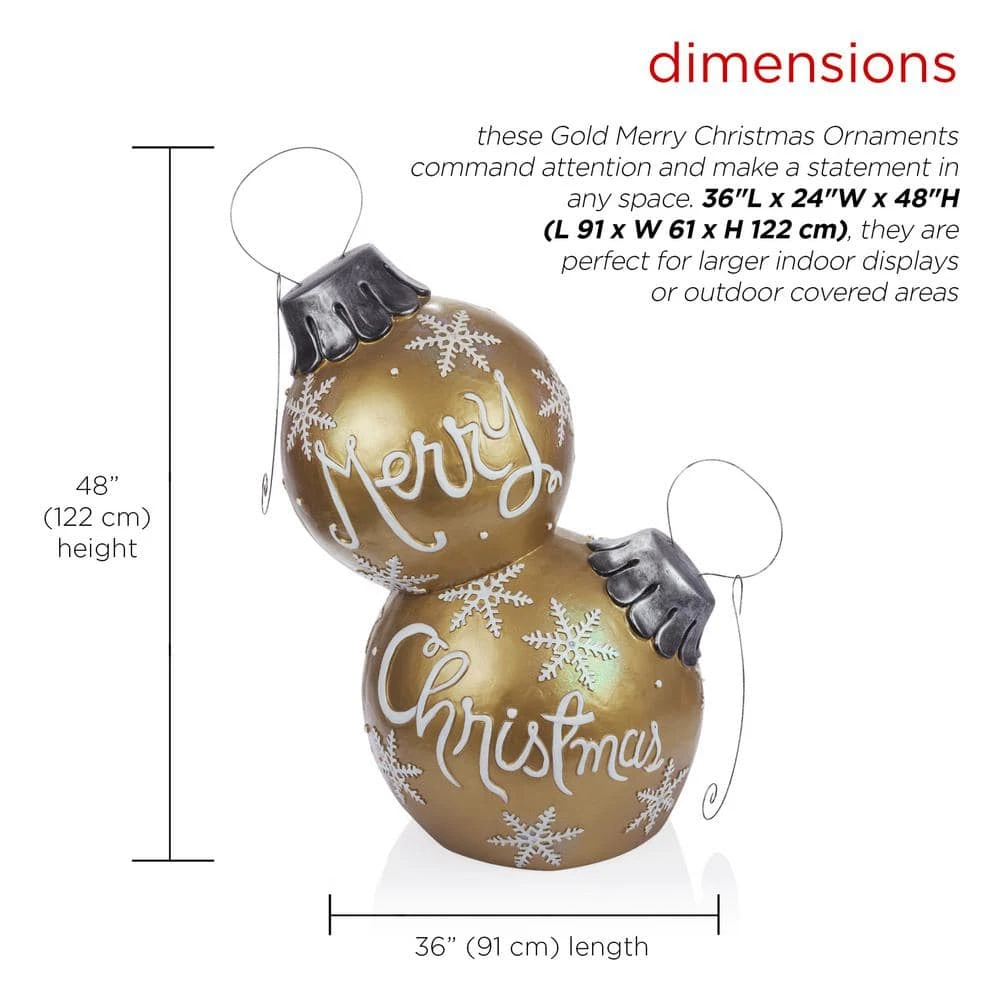 - Festive Holiday Decor: The ZTY138XL Gold Merry Christmas Ornament stands an impressive 48 inches tall, featuring a beautiful gold ball adorned with the cheerful phrase