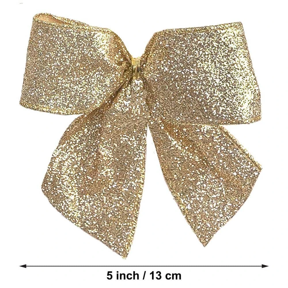 - Beautiful set of matching Christmas bows is handmade from designer-quality fabric ribbon with a chunky gold glitter texture
