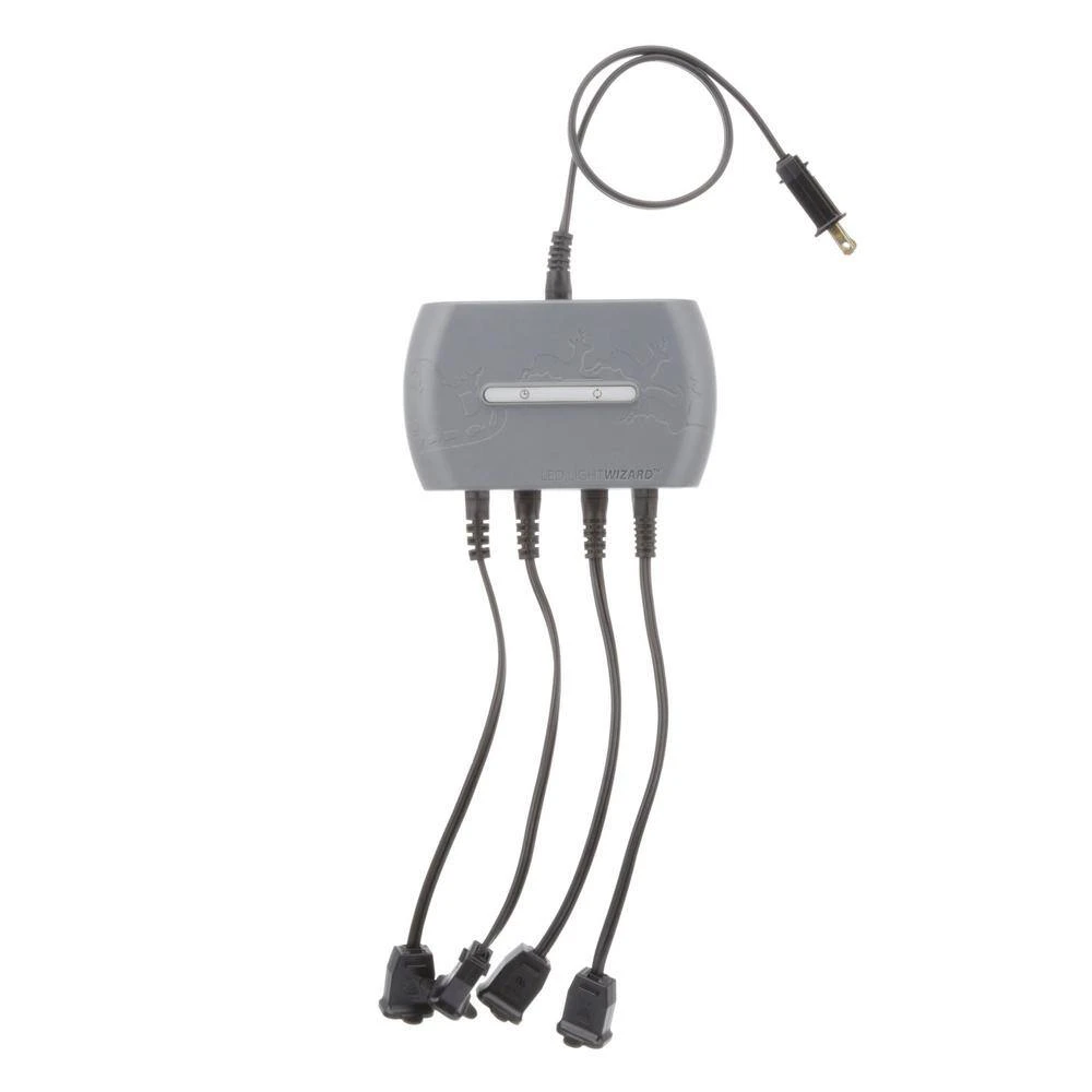 Now you can turn your ordinary LED string lights into a dazzling light show using the ILLUMINATIONS LED Light Wizard. Equipped with 4 ports that can handle up to 2000 lights each, for a total of 8000 lights. Simply connect your string lights to the ports, then use the remote to see the various light effects created. No additional set-up needed. All basic, non-functioning LED string lights are compatible with the Light Wizard.