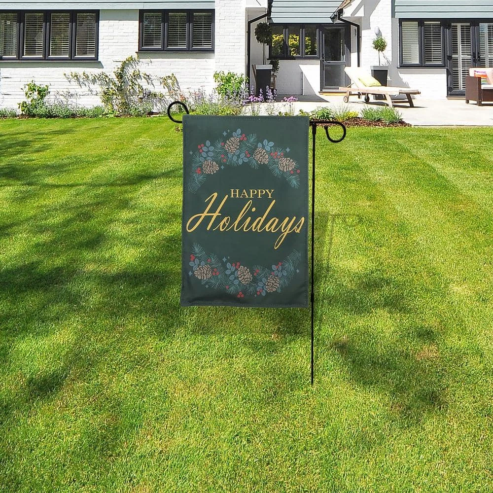 Welcome guests with the Happy Holidays lighted outdoor banner with a metal flag stand. Tastefully designed, the lighted banner showcases Happy Holidays adorned with a seasonally styled wreath. Your outdoor holiday decor will be complete as the remote-controlled amber LED lights illuminate the banner as it is hung from the metal stand.