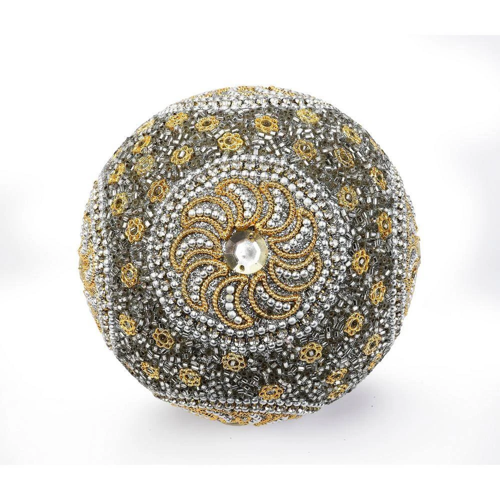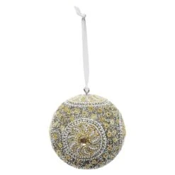 May the magic and thrill of the season shine bright with this set of 4 handcrafted silver and gold glistening moon globe ornaments. Each ornament is handmade of durable plastic and covered in sparkling glitter and glass accent beads. Hanging strings included with each ornament for easy decorating, share holiday joy on your Christmas tree, hang over a fireplace, use it as a door decoration or share with family and friends.