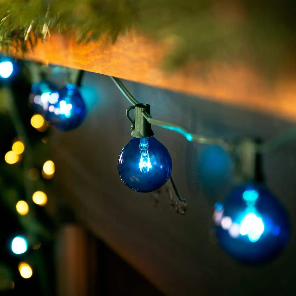 Transform your holiday season into a mesmerizing spectacle with our blue G50 globe Christmas lights. These enchanting lights are the perfect addition to your festive decorations. Featuring a classic green wire they effortlessly blend into your tree creating a stunning display of radiant blue hues. Each bulb emits a soft warm glow casting a magical ambiance that fills your home with joy and wonder. Whether you’re hosting a cheerful gathering or simply enjoying a cozy evening these captivating lights will illuminate your surroundings with their timeless beauty. Light up your holidays and make lasting memories with our globe Christmas lights. Product Features: Color: blue bulbs / green wire. Number of bulbs on string: 10. Bulb type: incandescent. E12 base. Incandescent. Spacing between each bulb: 12