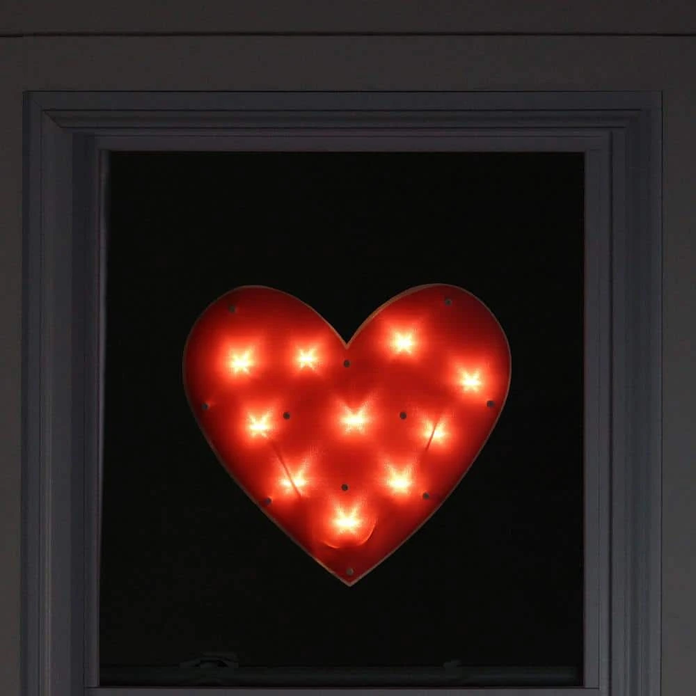 Add a little sparkle and shine to your Valentine’s Day decor with this heart silhouette featuring a glazed shimmery finish. The UL listing allows for these to be used both indoor and outdoor. They’re a fun way to decorate any room window or Easter party with color and light. Product features: Color: clear lights/white wire. Number of bulbs: 10. Bulb size: mini. 25 in. white lead cord. 1-sided design. Fully assembled. Additional product features: If 1-bulb burns out the rest will stay lit. Contains 1 plug with end connector allowing you to stack multiple lighted items together (not to exceed 210-Watt). Comes with replacement bulbs and spare fuse. Suction cup included. UL listed for indoor/outdoor use. 120-Volt 60 Hz 0.08 Amp 9.6-Watt. Material(s): durable high impact plastic/glass bulbs/wire.