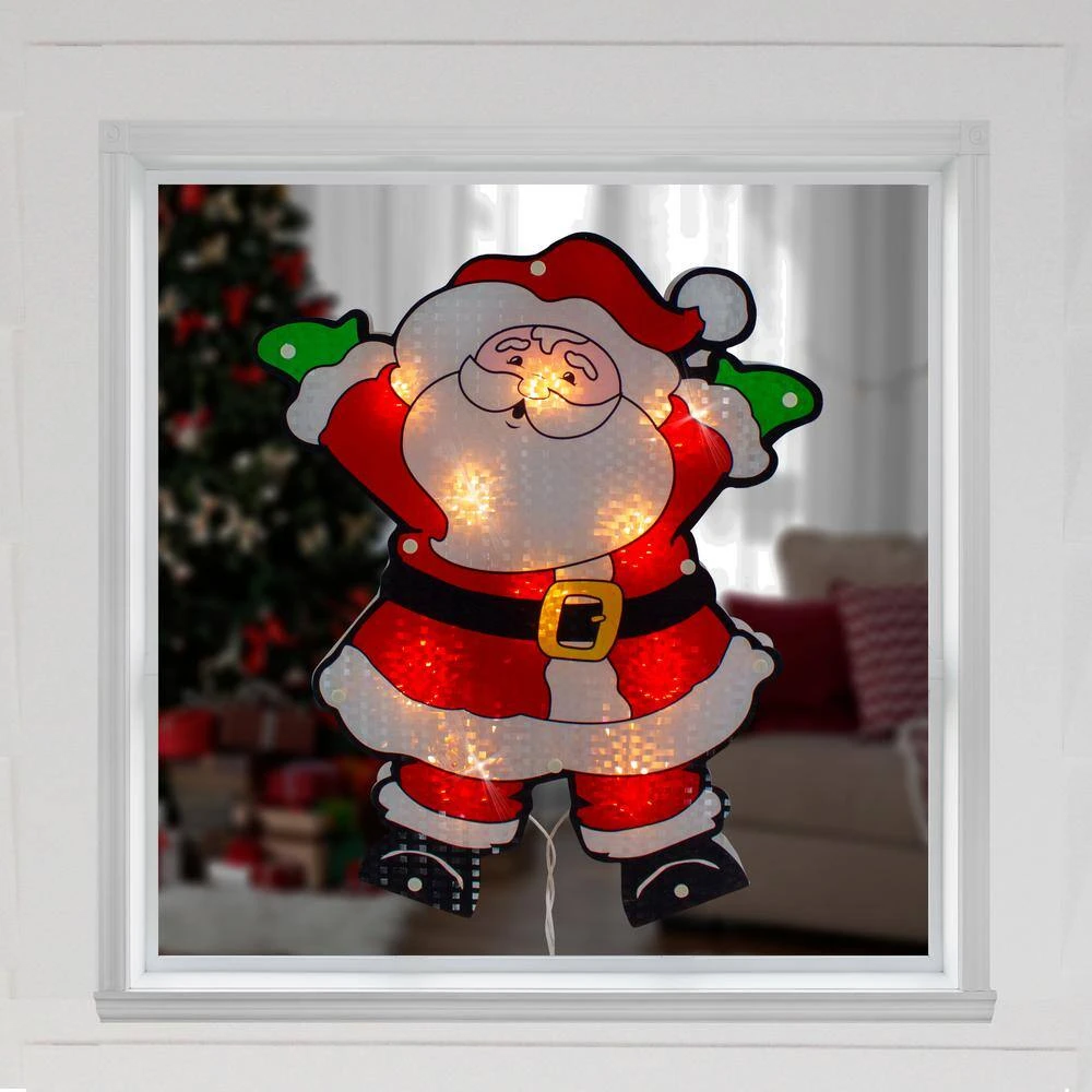 Light up your home this holiday season with this Santa Claus window silhouette. The perfect way to spruce up your decor with very little work. Add this decoration to your home for a bright touch of holiday spirit. Product Features: Color: clear bulbs / white wire. Number of bulbs: 10. Bulb size: mini. 24 in. white lead cord. 1-sided design. Durable and re-usable. Additional Product Features: Super bright bulbs. UL certified and approved for indoor use only. If 1-bulb burns out the rest will stay lit. Comes with replacement bulbs spare fuses and a suction cup for mounting the decoration. Contains 1 plug with end connector which allows you to stack multiple lighted items together (not to exceed 210-Watt). Wire gauge: 22. Dimensions: 16.25 in. H x 12.5 in. W x 1 in. D. Material(s): plastic/wire/glass bulbs.