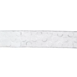 This gorgeous white and metallic silver ribbon with circle pattern would be a great way to decorate your gifts and home for the holiday season. The wired ribbon will help everyday designs maintain their shape and beauty. Whether you’re a florist an event planner or crafter wired edge ribbon is a dream to work with. Add this ribbon to Christmas gifts wreaths or trees for beauty and shine. Features: Features a design of circles outlined in silver. Sewn wire edged ribbon allows you to bend and shape your creations to decorate with ease. Ribbon has a metallic silver trim. Ribbon comes on (1) spools. Dimensions of each spool: 2.5 in. W x 16 yds. in length. Material(s): polyester/metallic.
